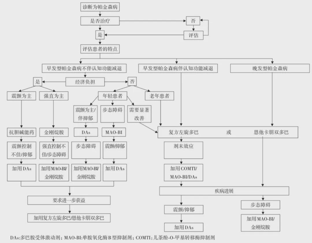 帕金森病的药物治疗流程/图源:中国帕金森病治疗指南(第四版)